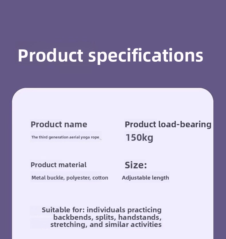 Utilisation polyvalente : Convient au yoga aérien, à l’ouverture des épaules, aux étirements du dos et au renforcement musculaire.
