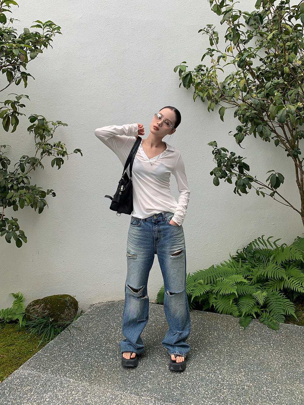 Design déchiré : détails usés et finitions artisanales pour un look tendance et audacieux.