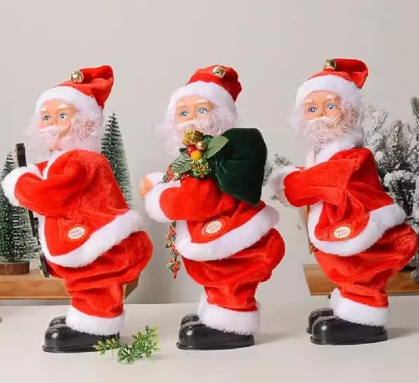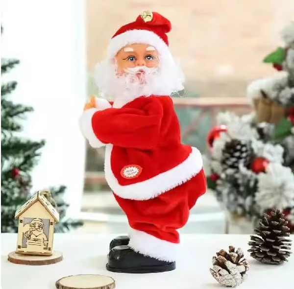 Musique joyeuse et twerk : une poupée Père Noël festive joue de la musique tout en bougeant les hanches, les mains et la tête pour les célébrations des fêtes.