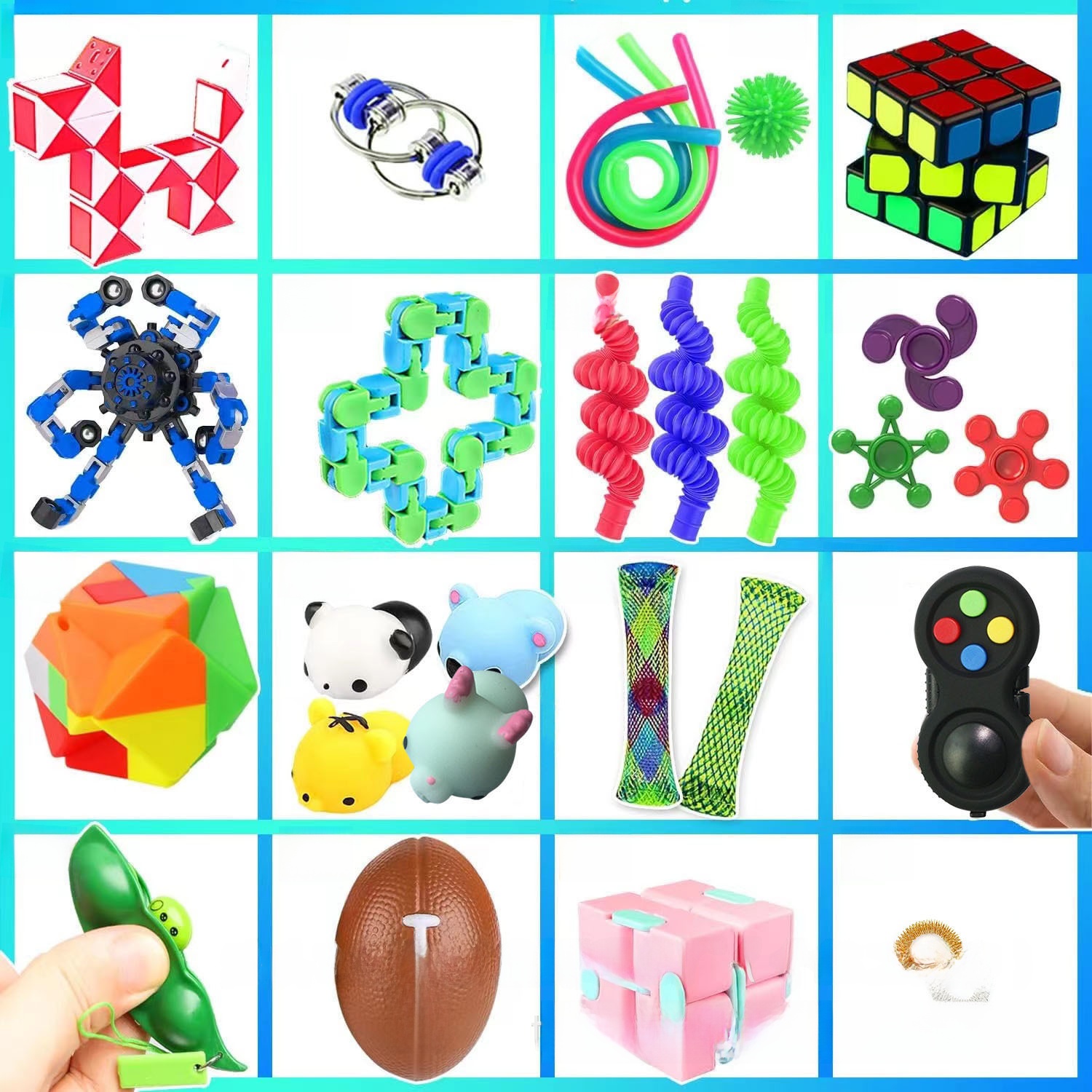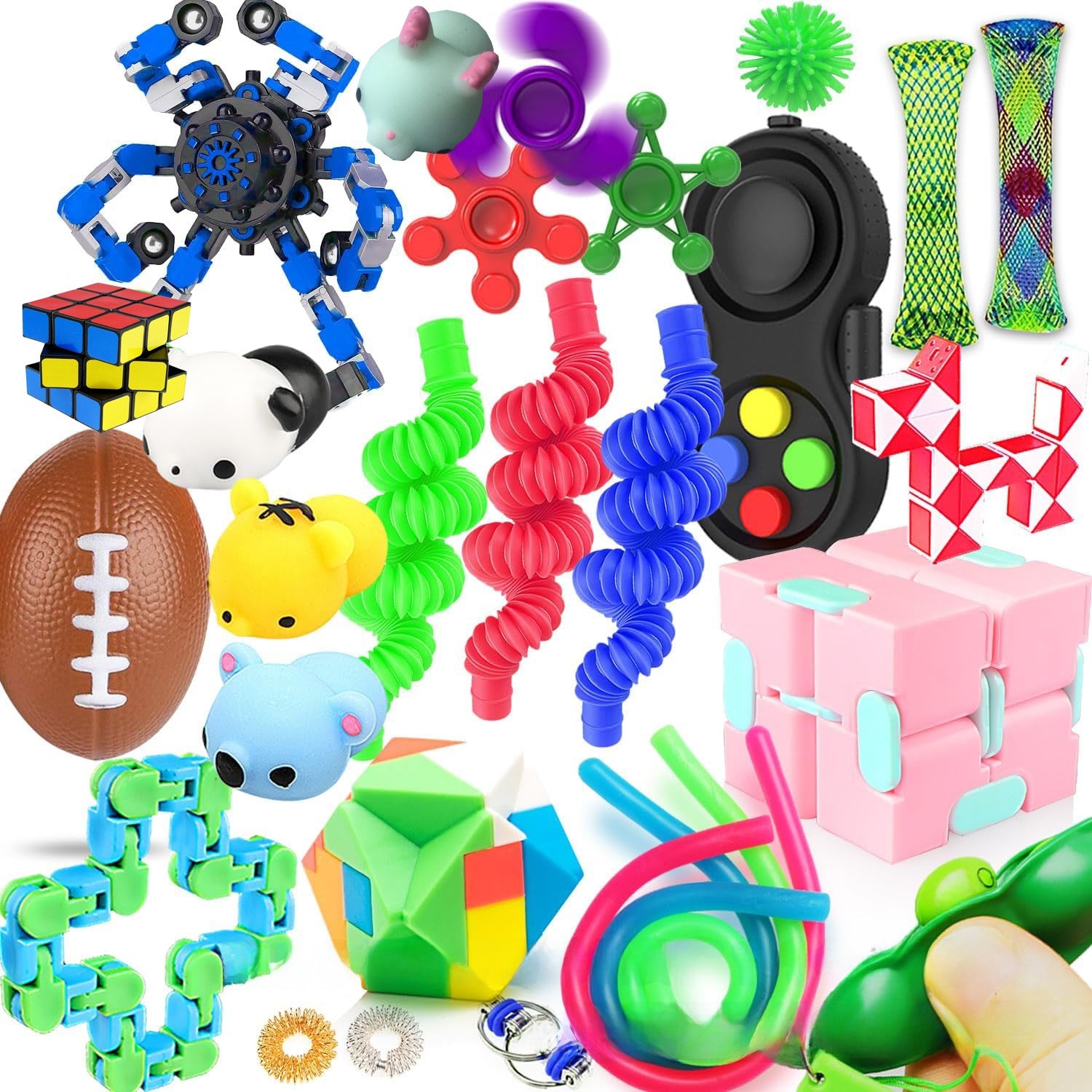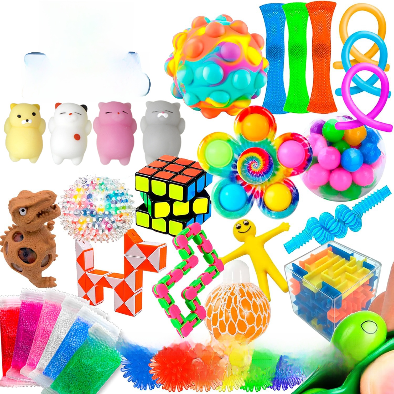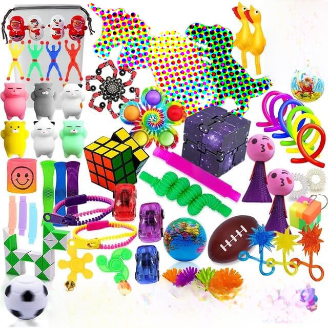 Jouets anti-stress : Une variété de jouets sensoriels conçus pour aider à soulager le stress et l’anxiété.