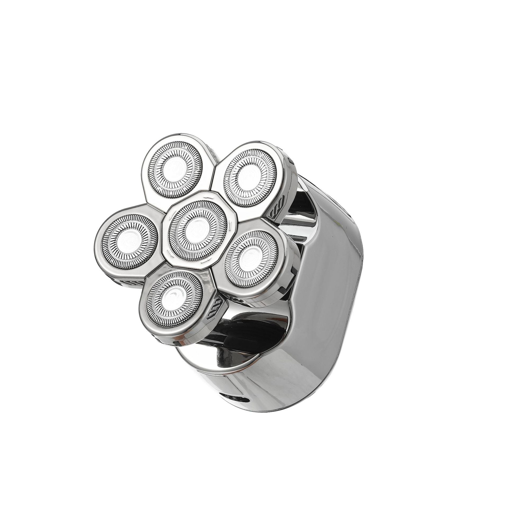 Multifonctionnel : Système rotatif à 6 têtes pour le rasage de la tête et la taille de la barbe.