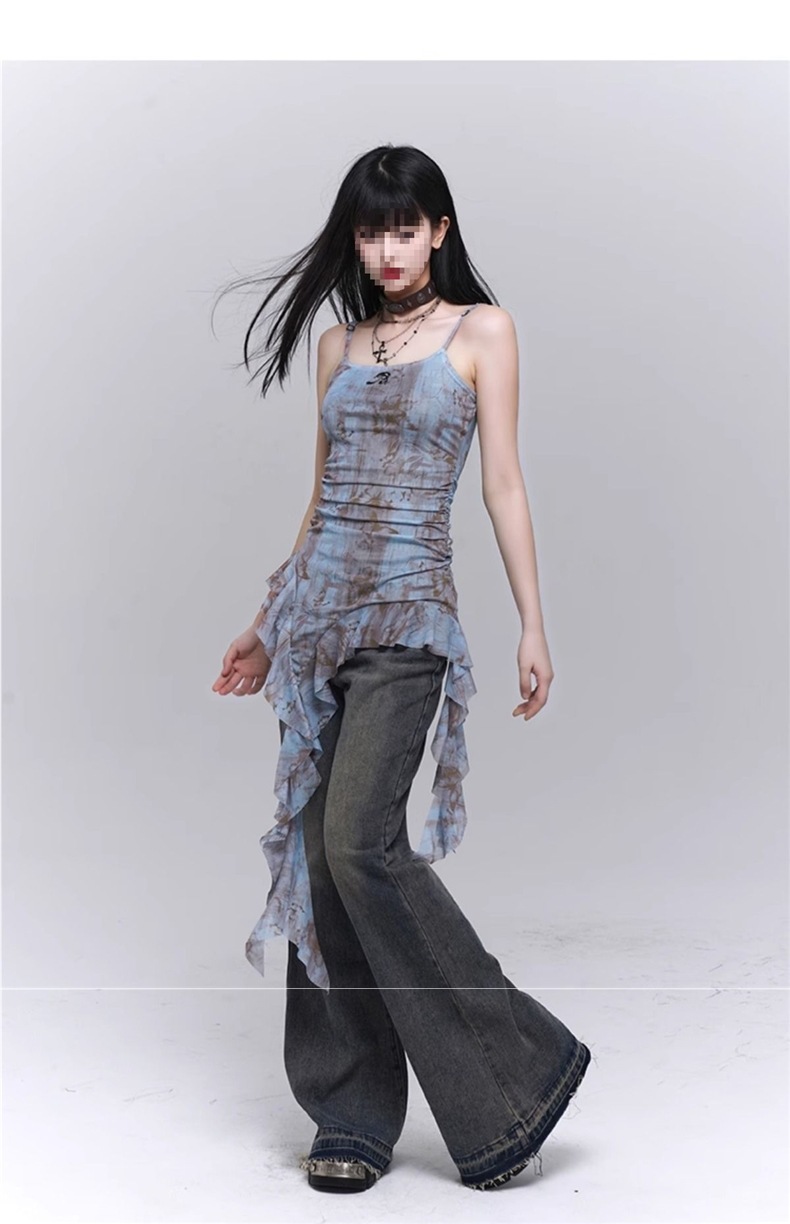 Esthétique Y2K : Présente un imprimé flou tendance inspiré des années 2000 et un design asymétrique pour un look à la mode.