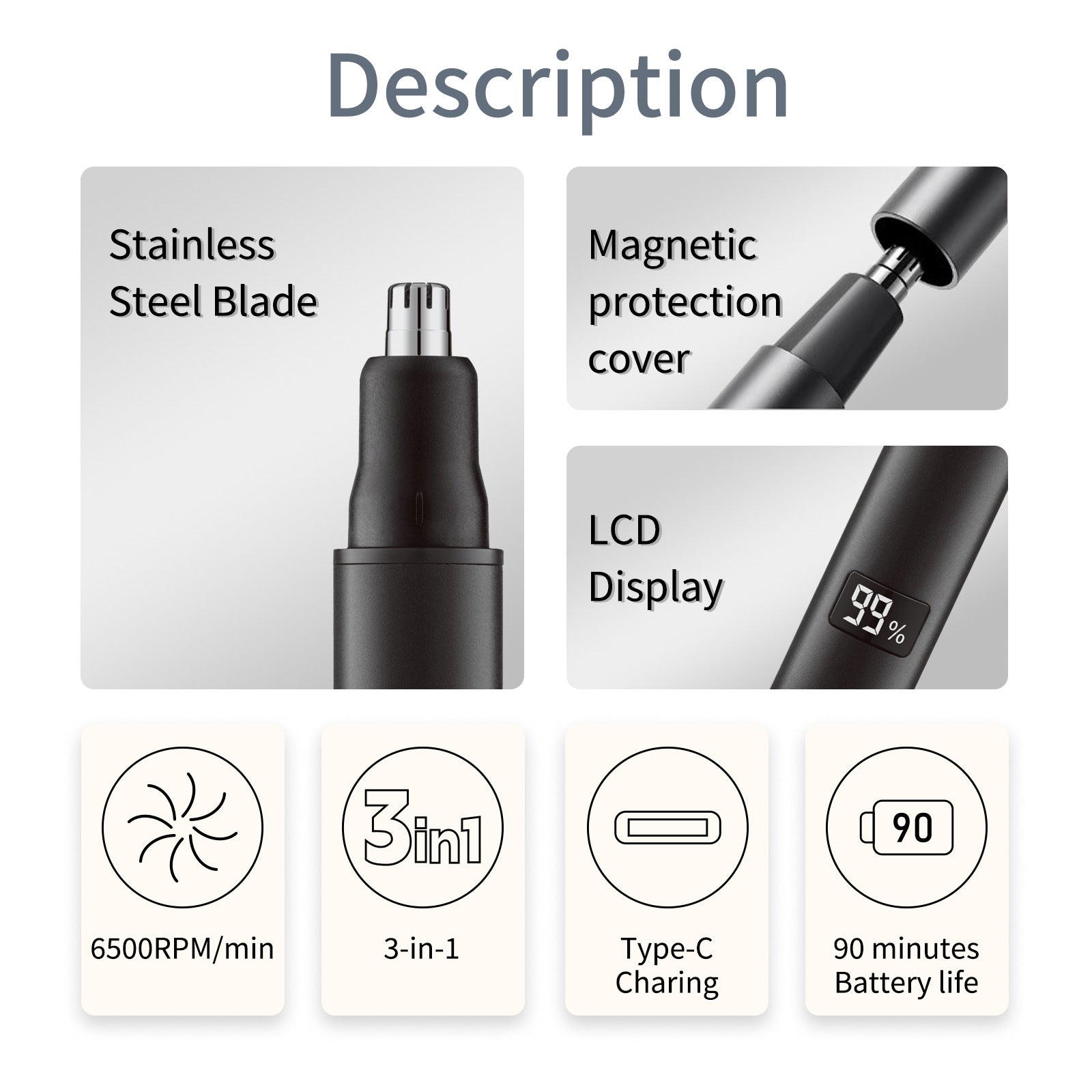 Multifunctional: 3-in-1 trimmer for nose hair, eyebrows, and facial hair