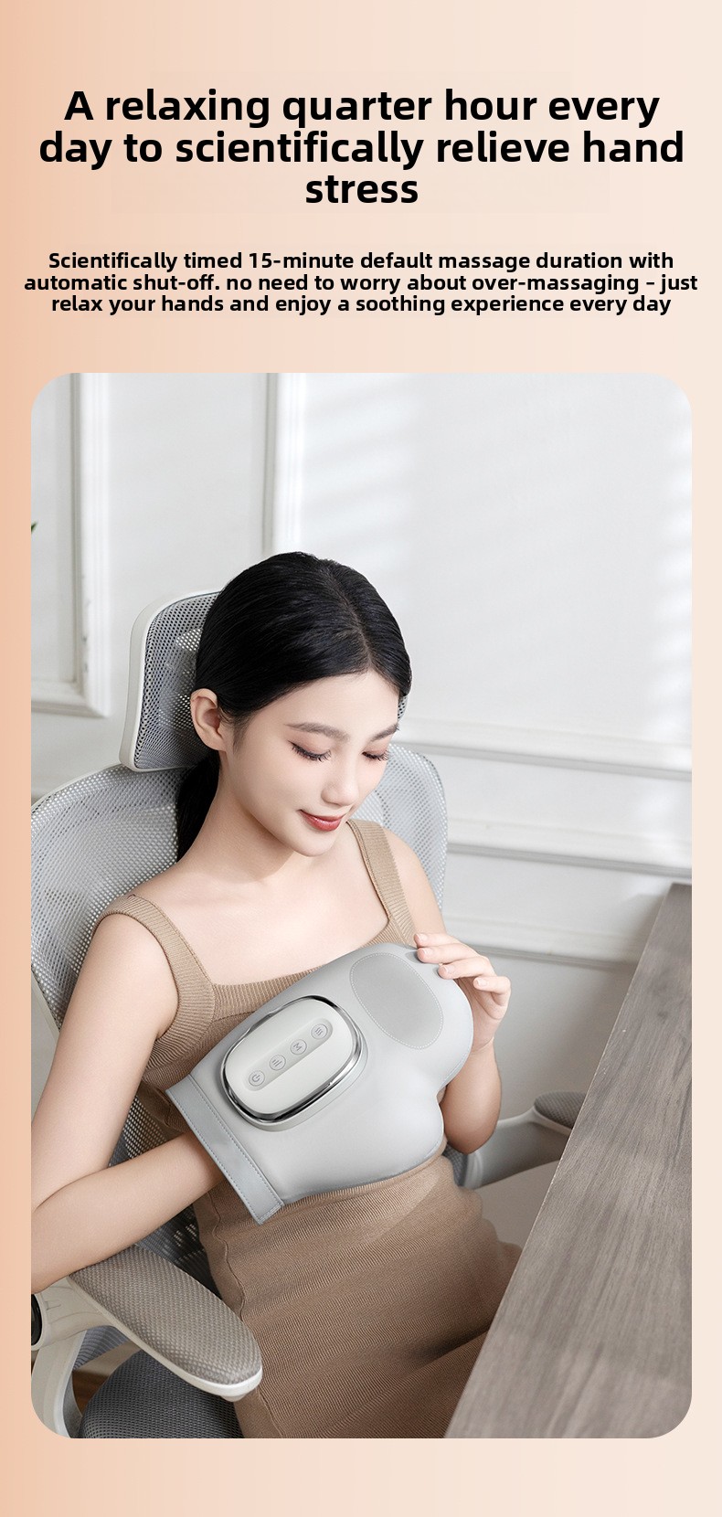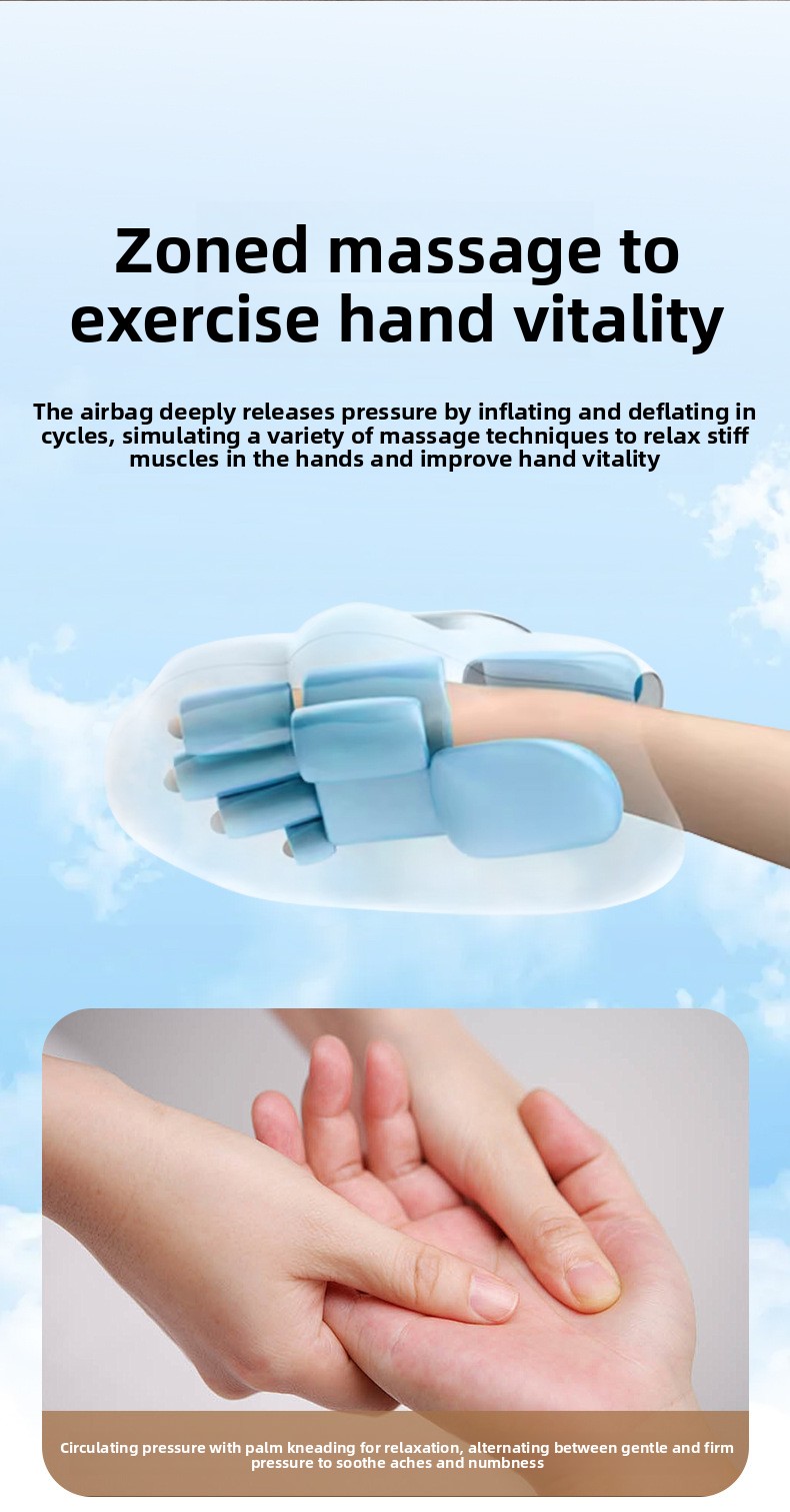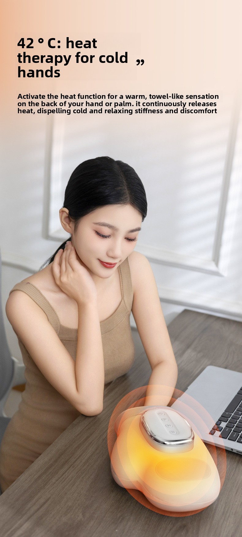 Design ergonómico: A terapia de cinco zonas com compressão por airbag atinge áreas específicas da mão de forma eficaz.