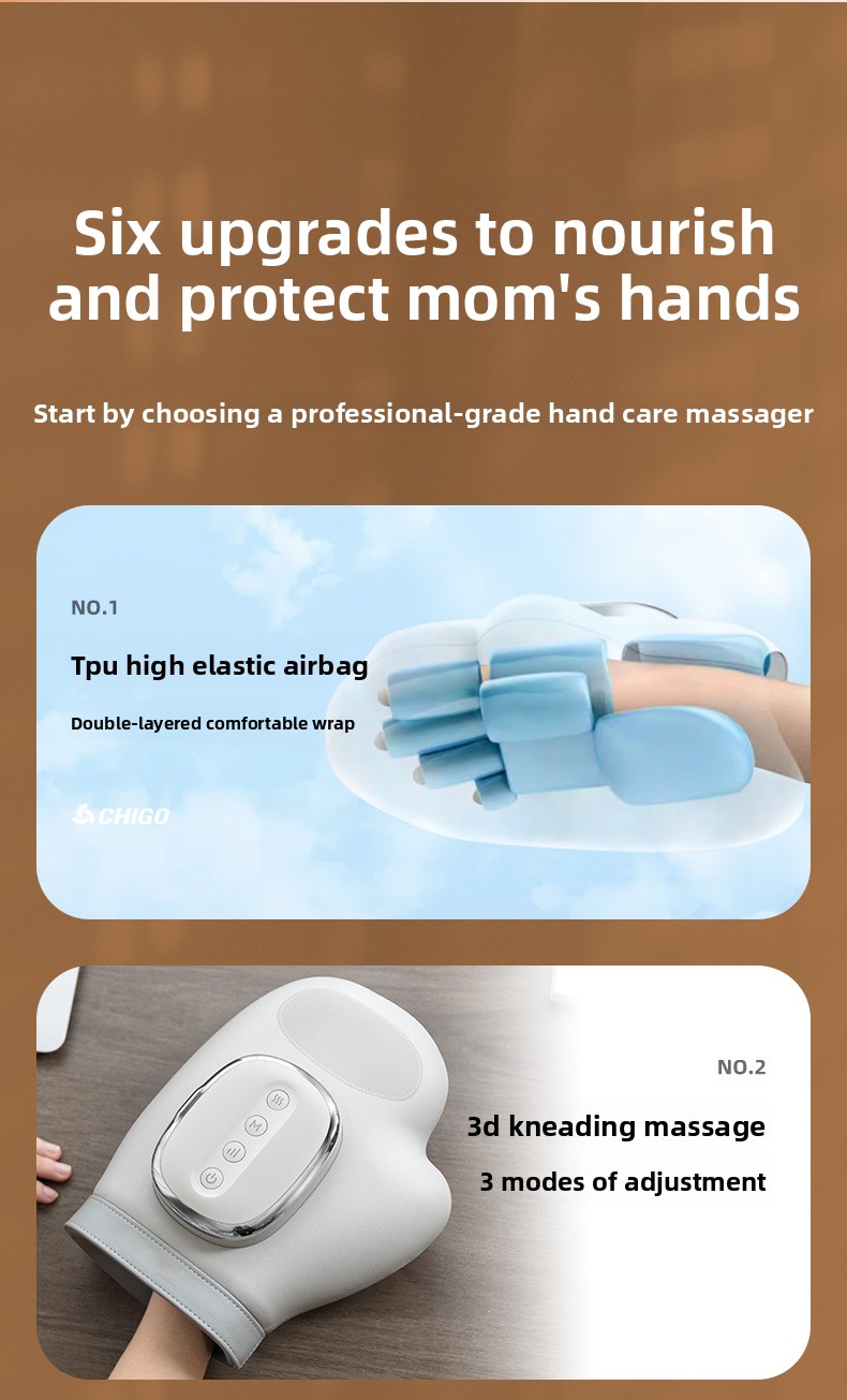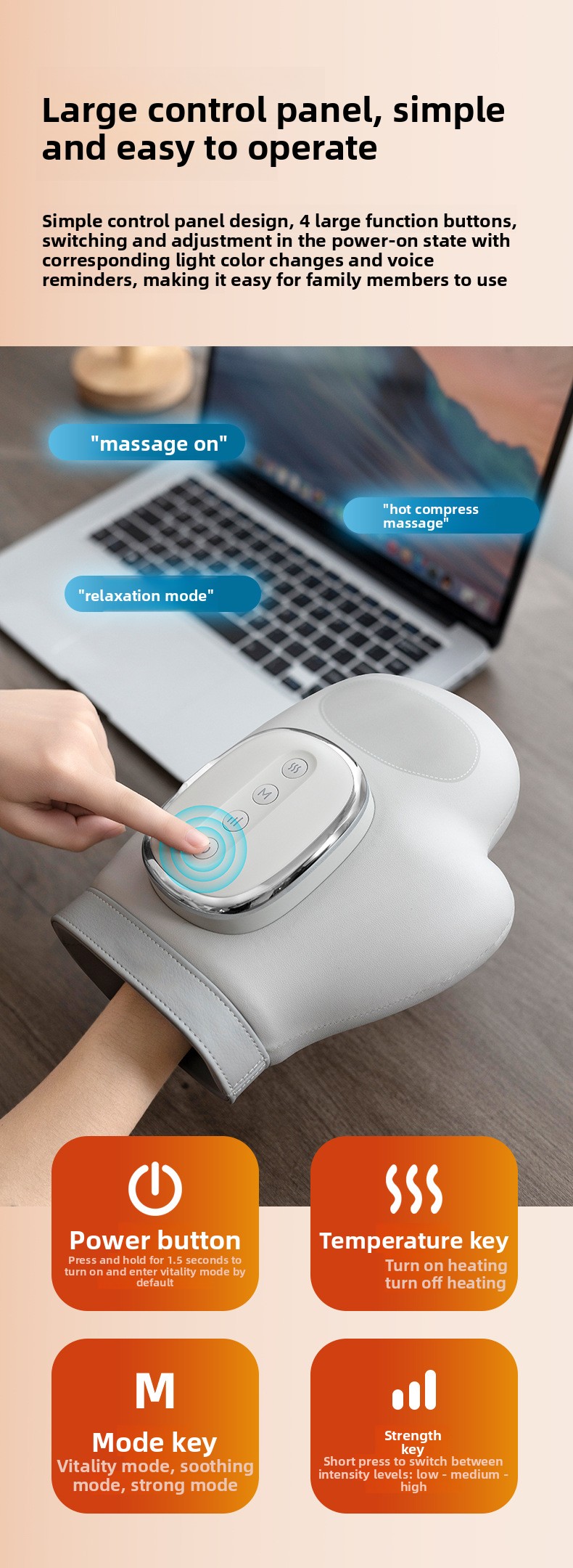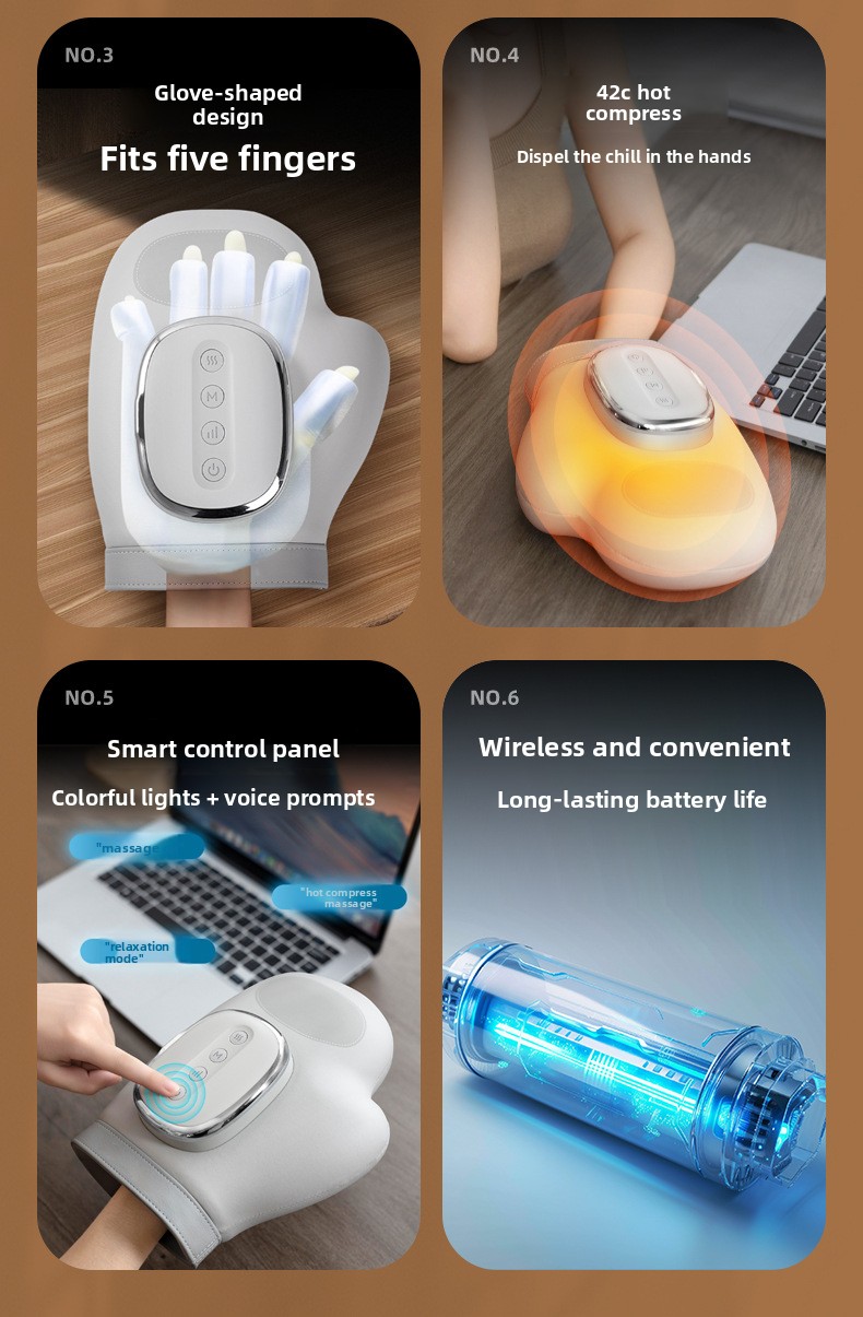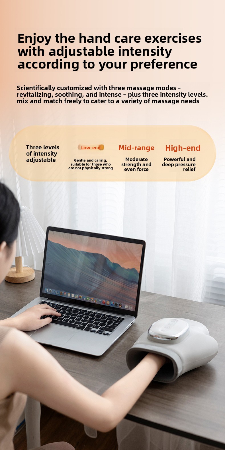 Design ergonómico: A terapia de cinco zonas com compressão por airbag atinge áreas específicas da mão de forma eficaz.
