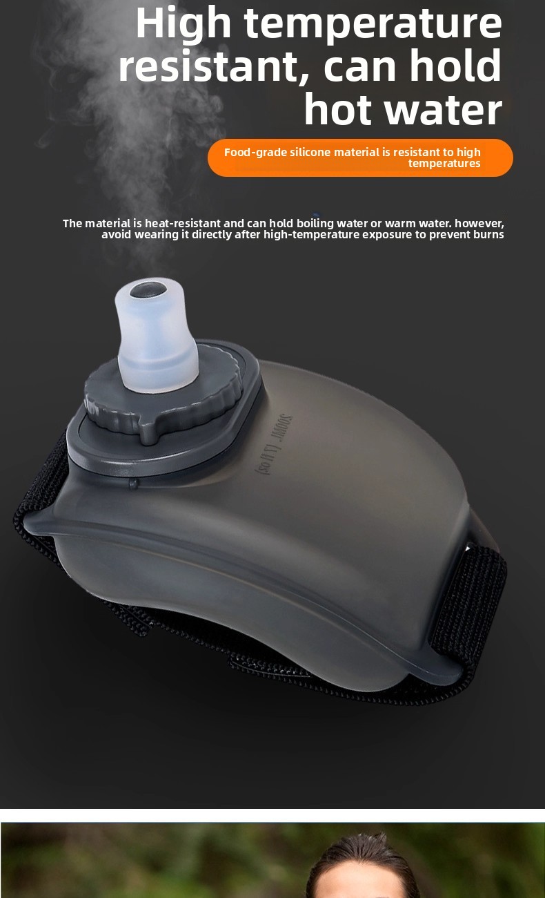 Design portátil: Bolsa de água em silicone leve e flexível para facilitar o transporte durante as atividades.